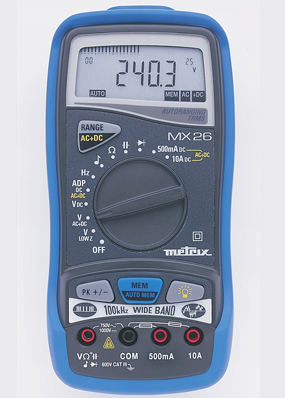 MX24B 5000点数字万用表 MX24B是一款高精度的真有效值(TRMS) 数字万用表 (DMM),专用于日常电气应用方面的测量。MX24B具有5000点显示和34段条形图显示,同时采用人体工程学设计,手持和操作都非常舒适,通过一个大旋钮,即可方便快捷的选择各种功能。MX24B具有标准万用表所有的功能:电压、电流、频率和电阻的测量,导通性及二极管检测,另外还具有低阻抗AC电压测量模式,可有效消减杂散电压的影响。MX24B 使用安全,符合标准EN 61010,600V Cat. III。